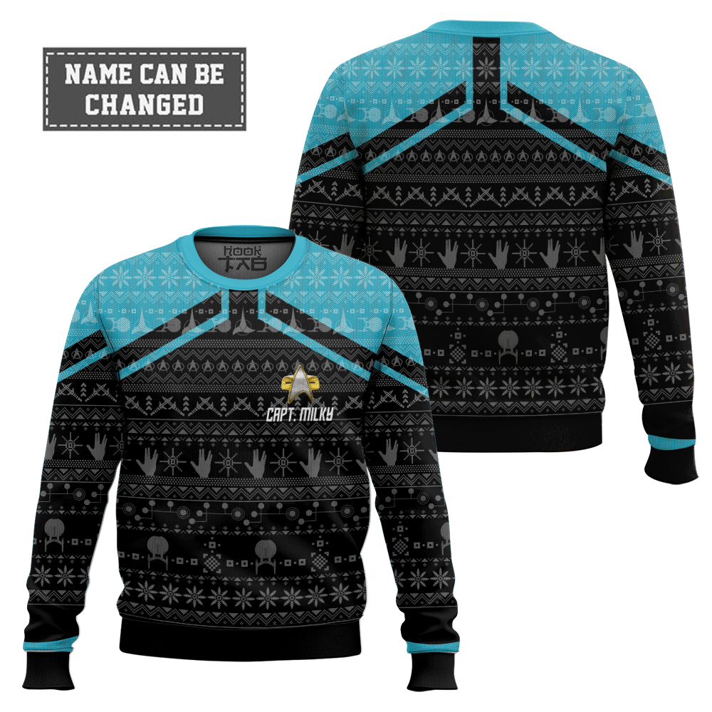 Hooktab Star Trek Picard 2020 Blue – Custom Name Ugly Christmas Sweater