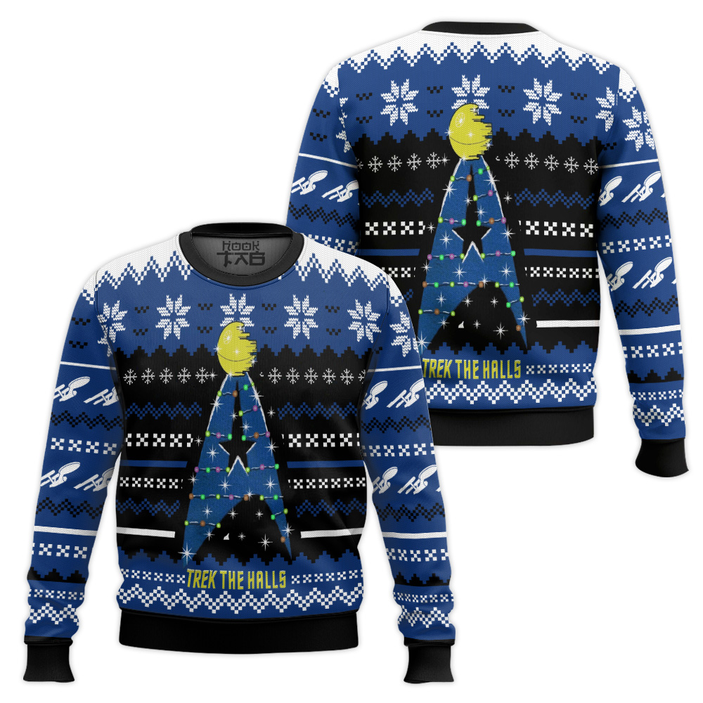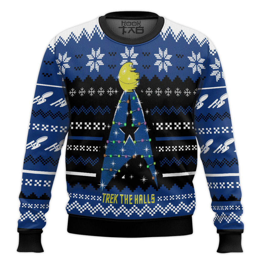 Hooktab Star Trek The Halls Blue Ugly Christmas Sweater