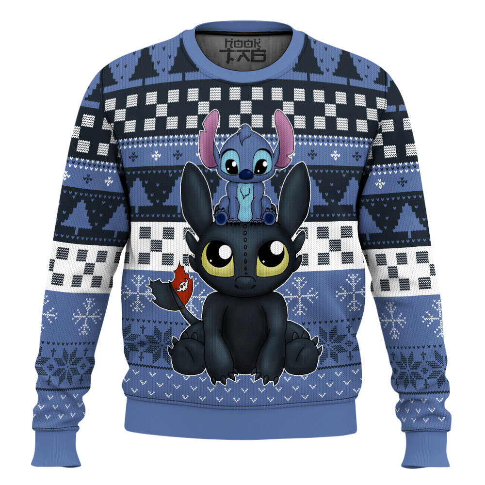Hooktab Stitch And Toothless Ugly Christmas Sweater