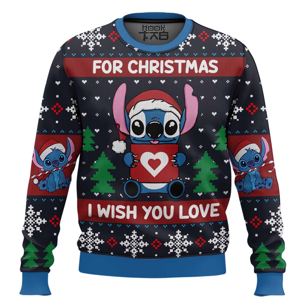 Hooktab Stitch I Wish You Love Lilo And Stitch Ugly Christmas Sweater