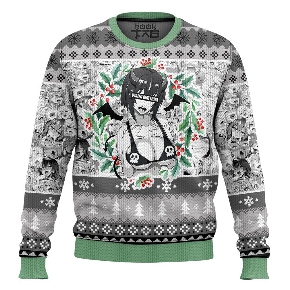Hooktab Succubus Waifu Material Ahegao Ugly Christmas Sweater