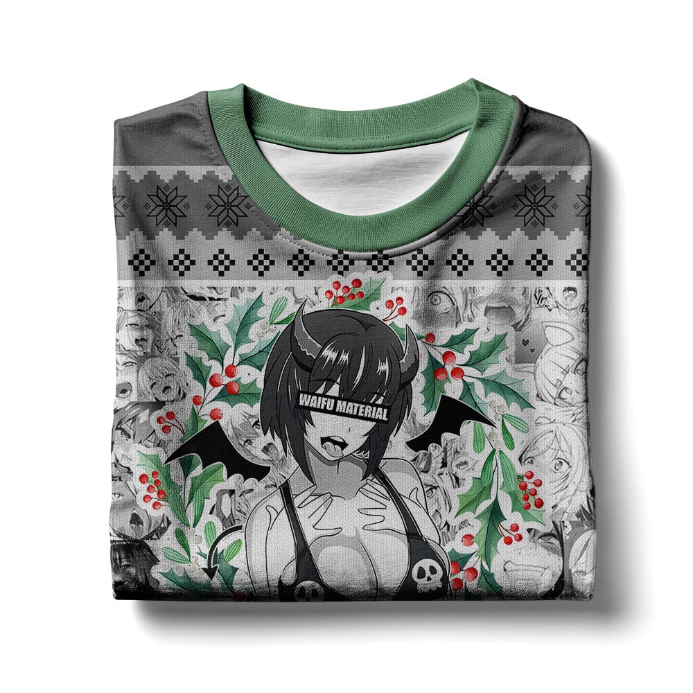 Waifu Material Succubus Ahegao Ugly Sweater