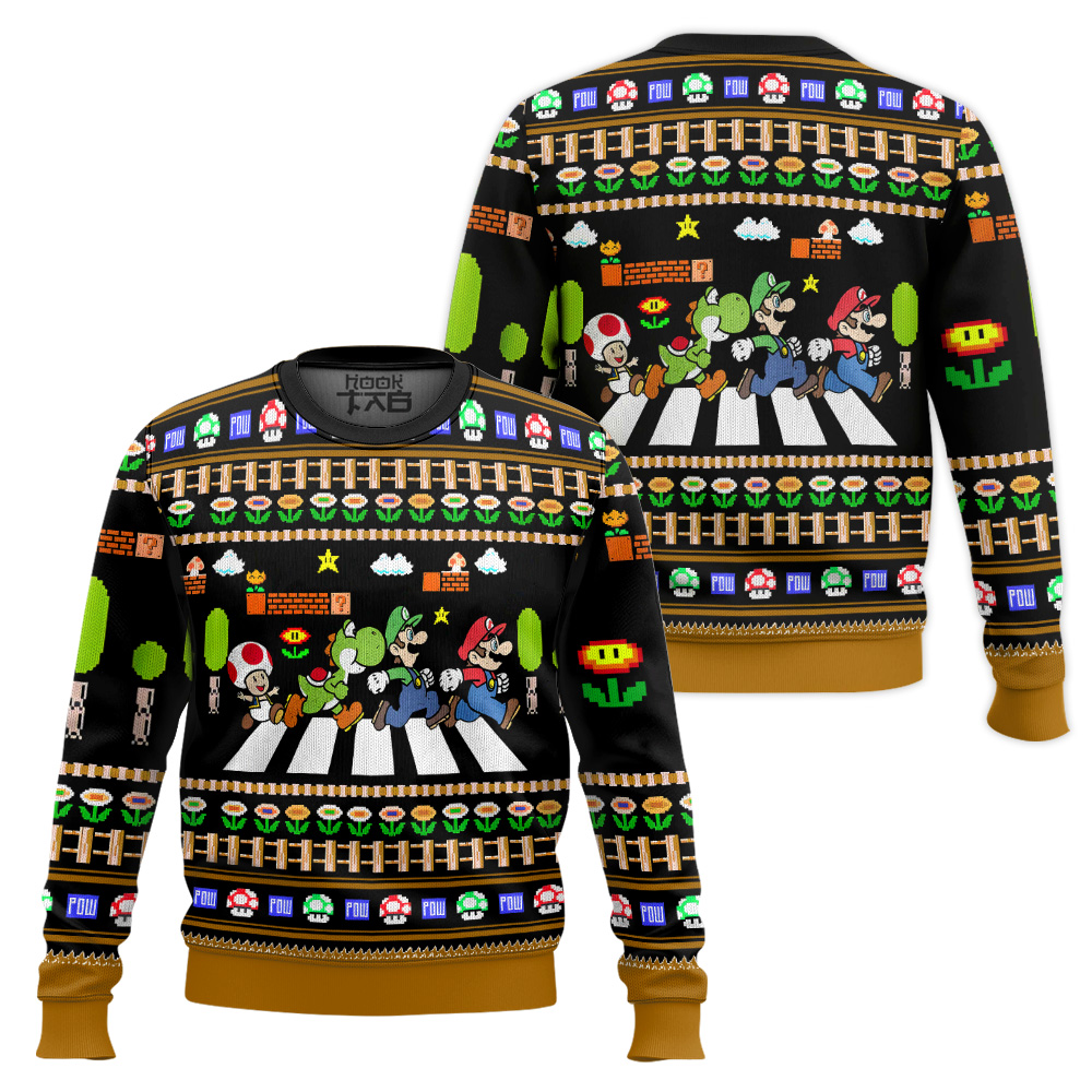 Hooktab Super Mario Abbey Road Ugly Christmas Sweater