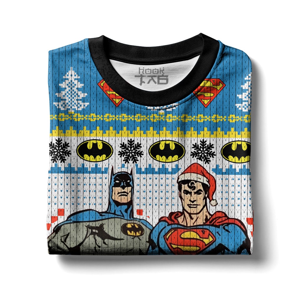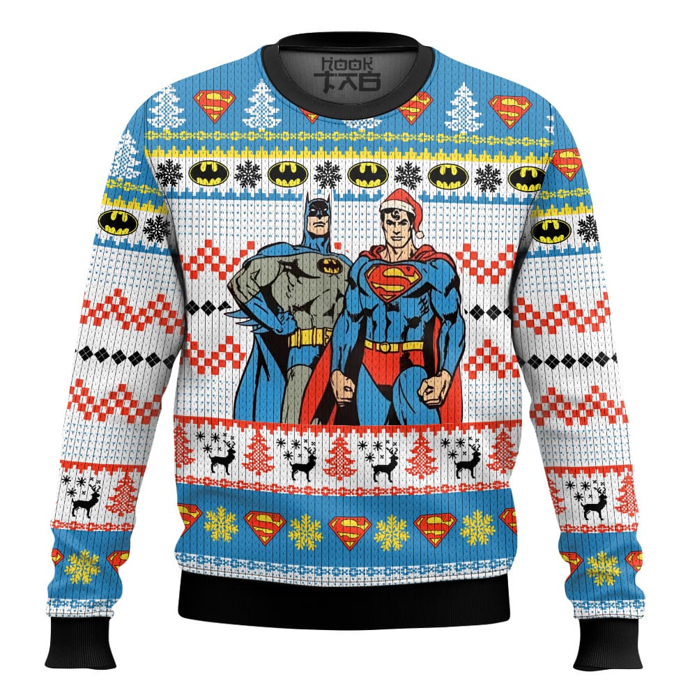 Hooktab Superman And Batman Ugly Christmas Sweater