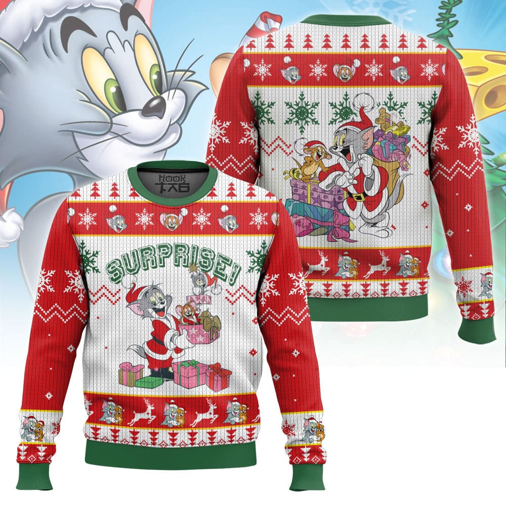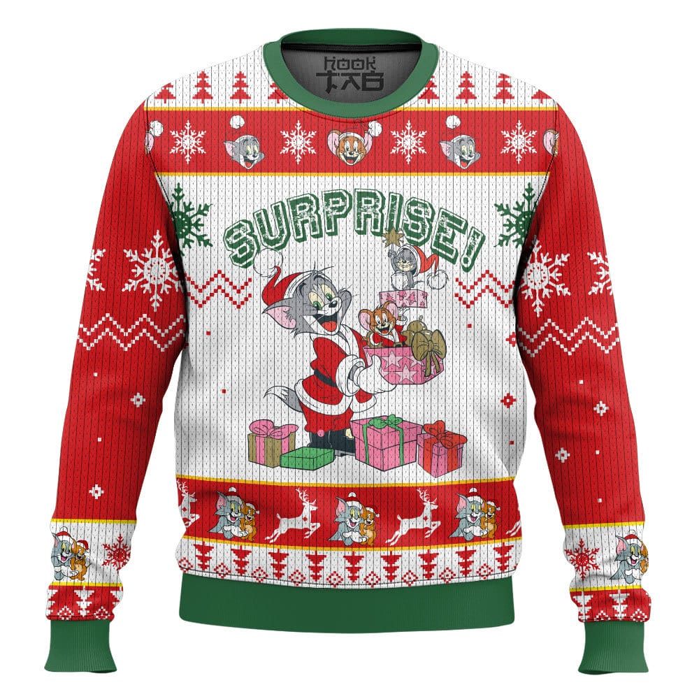 Hooktab Surprise! Tom And Jerry Ugly Christmas Sweater