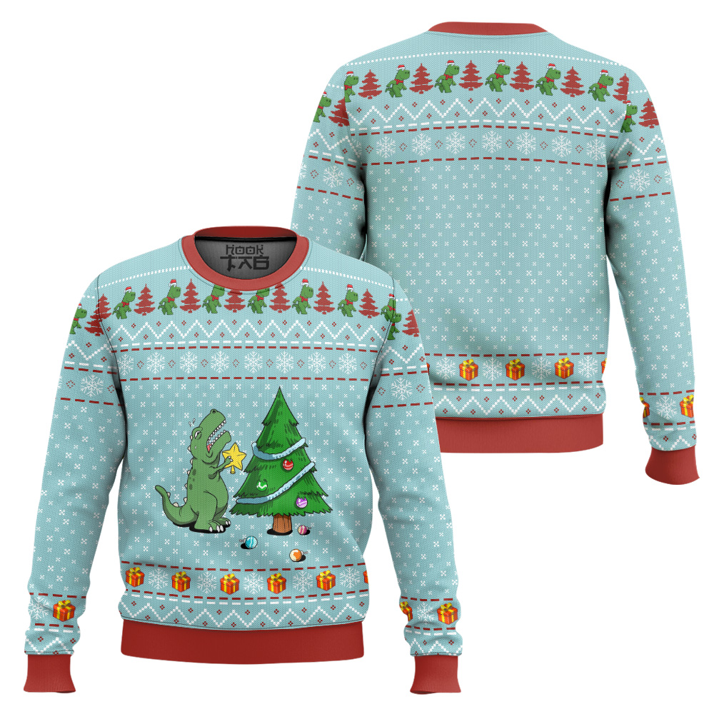 Hooktab T-Rex And Christmas Tree Ugly Christmas Sweater