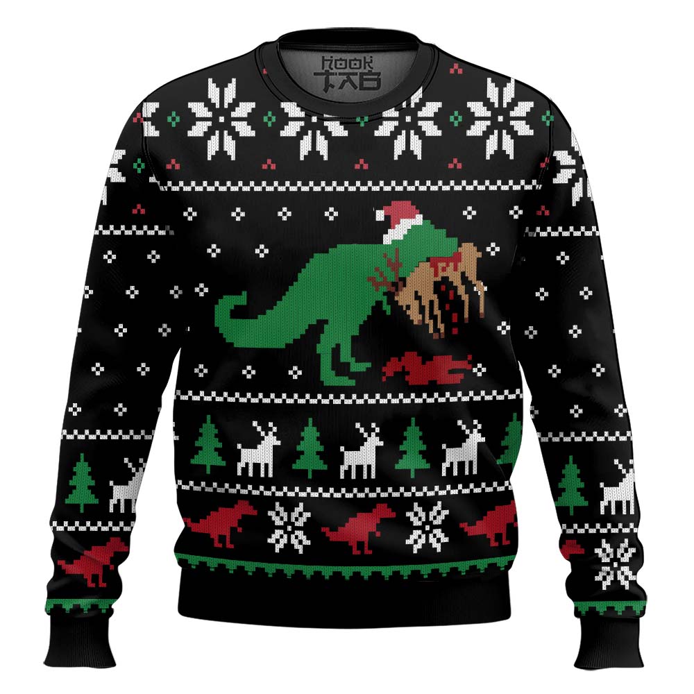 Hooktab T-rex Christmas Dinner Ugly Christmas Sweater