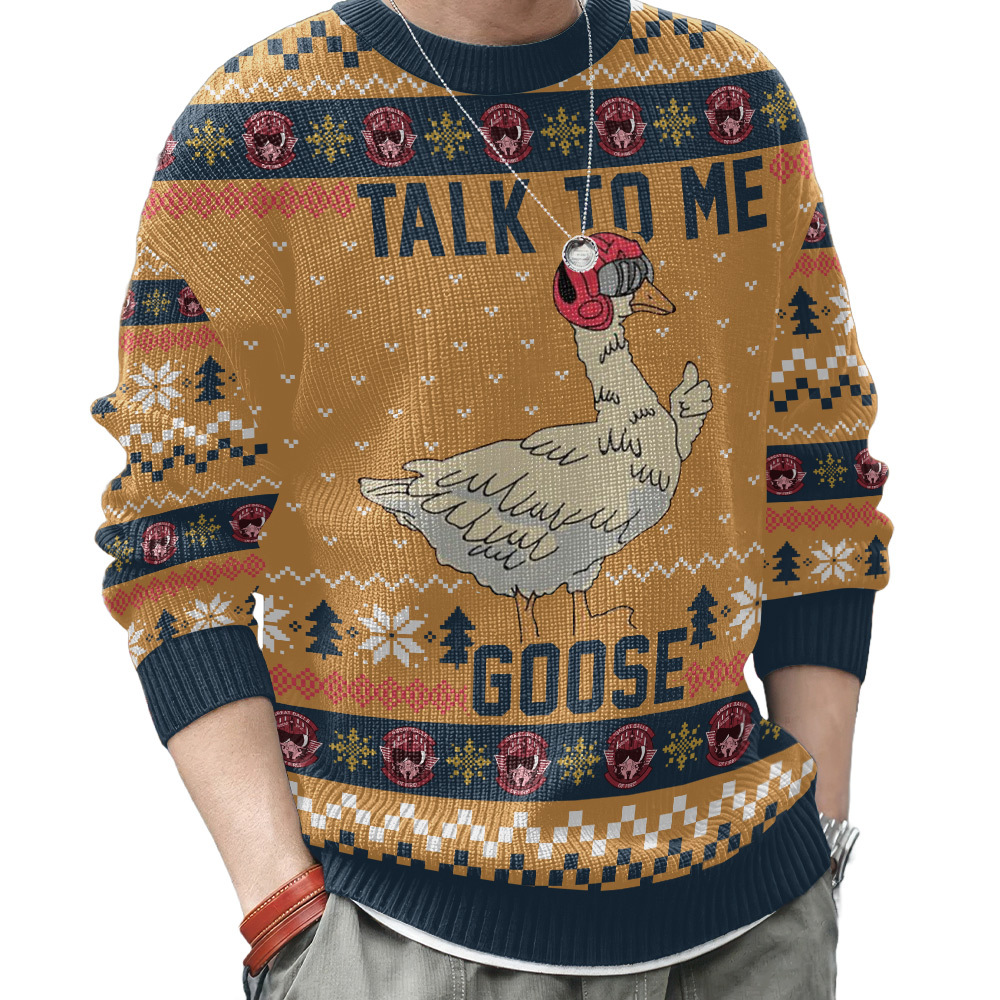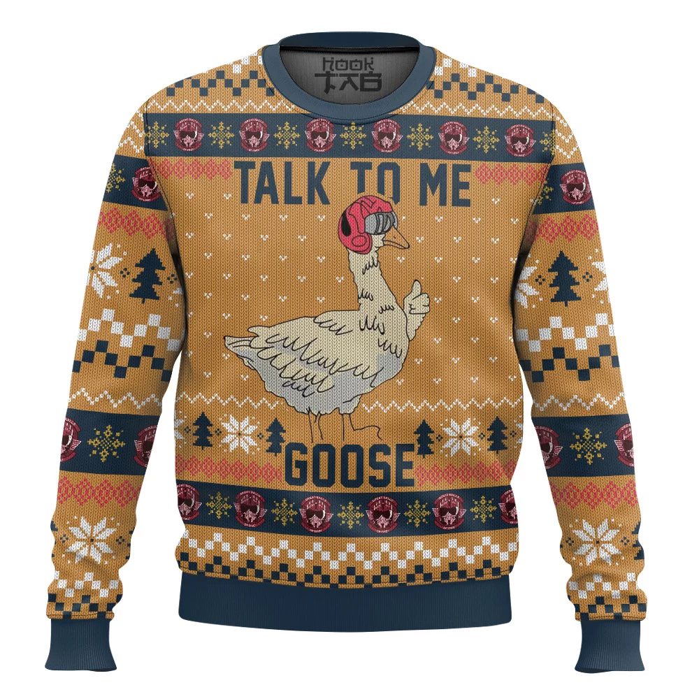 Hooktab Talk To Me Goose Top Gun Ugly Christmas Sweater