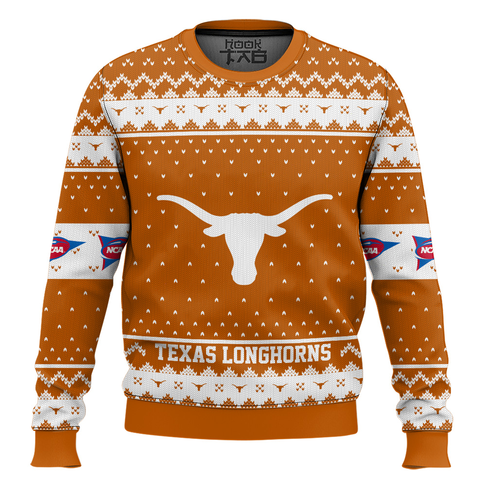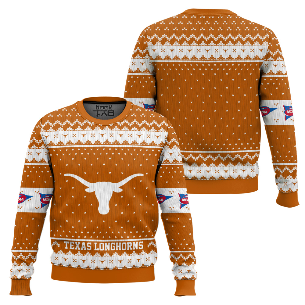 Hooktab Texas Longhorns – Custom Name And Number Ugly Christmas Sweater