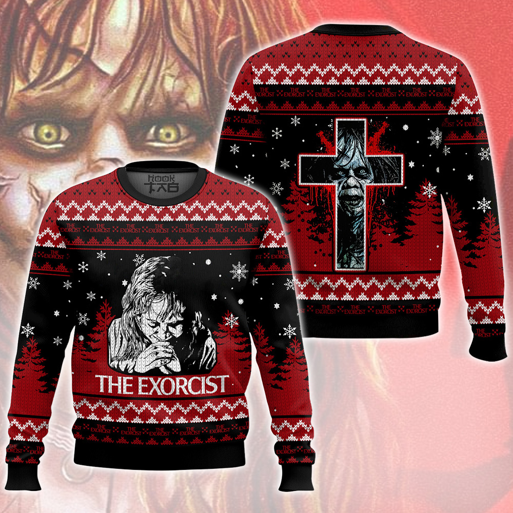 Hooktab The Exorcist Cross Ugly Christmas Sweater