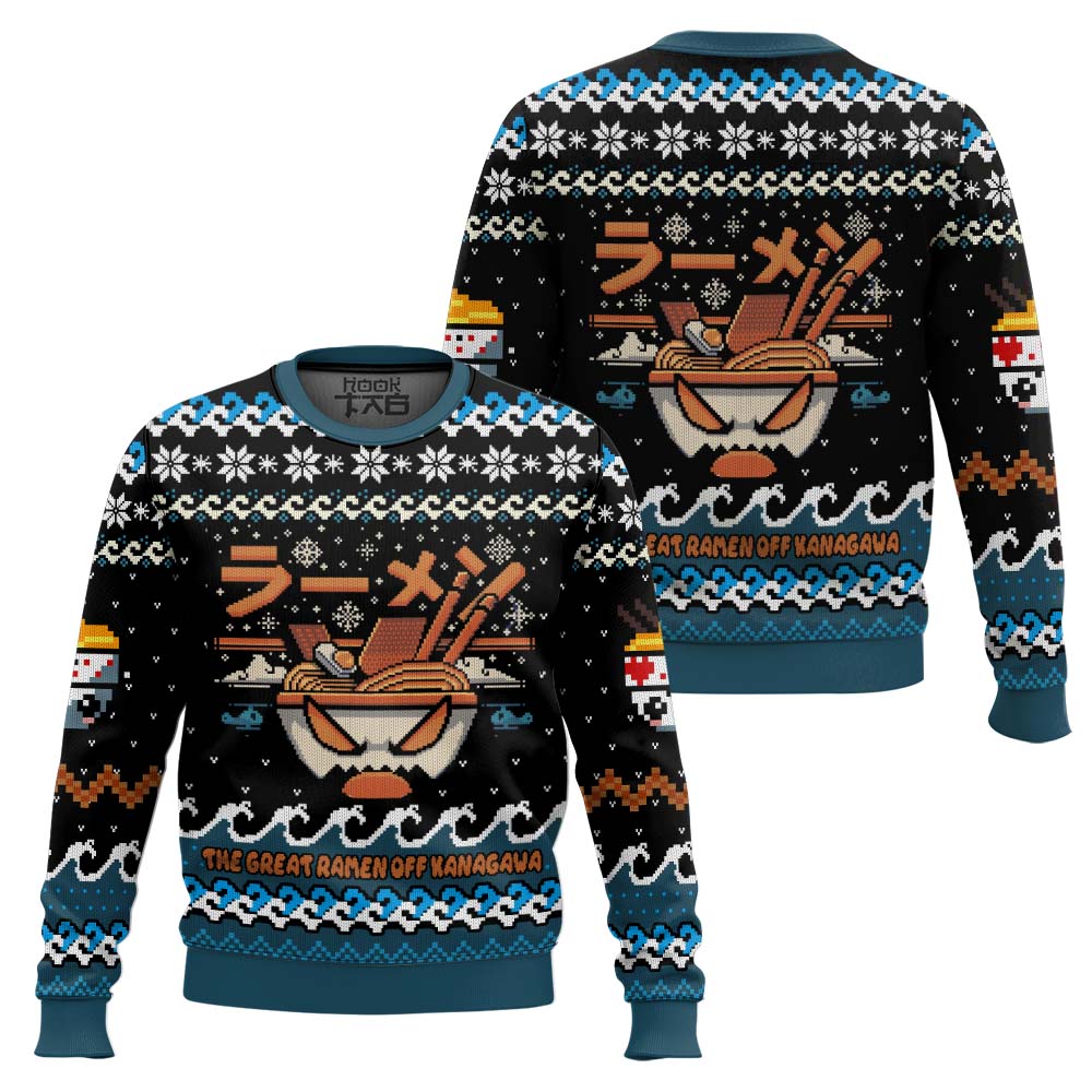 Hooktab The Great Ramen Off Kanagawa Ugly Christmas Sweater
