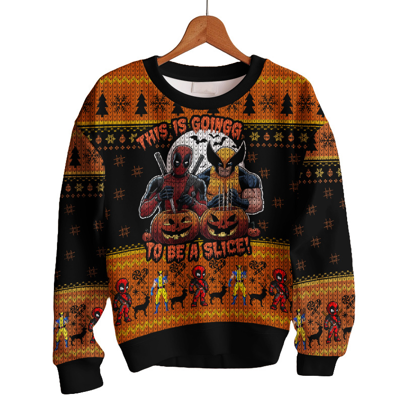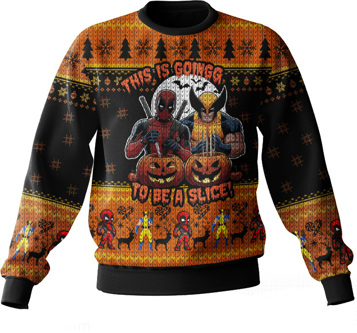 Hooktab This Is Going To Be A Slice Deadpool & Wolverine Ugly Christmas Sweater