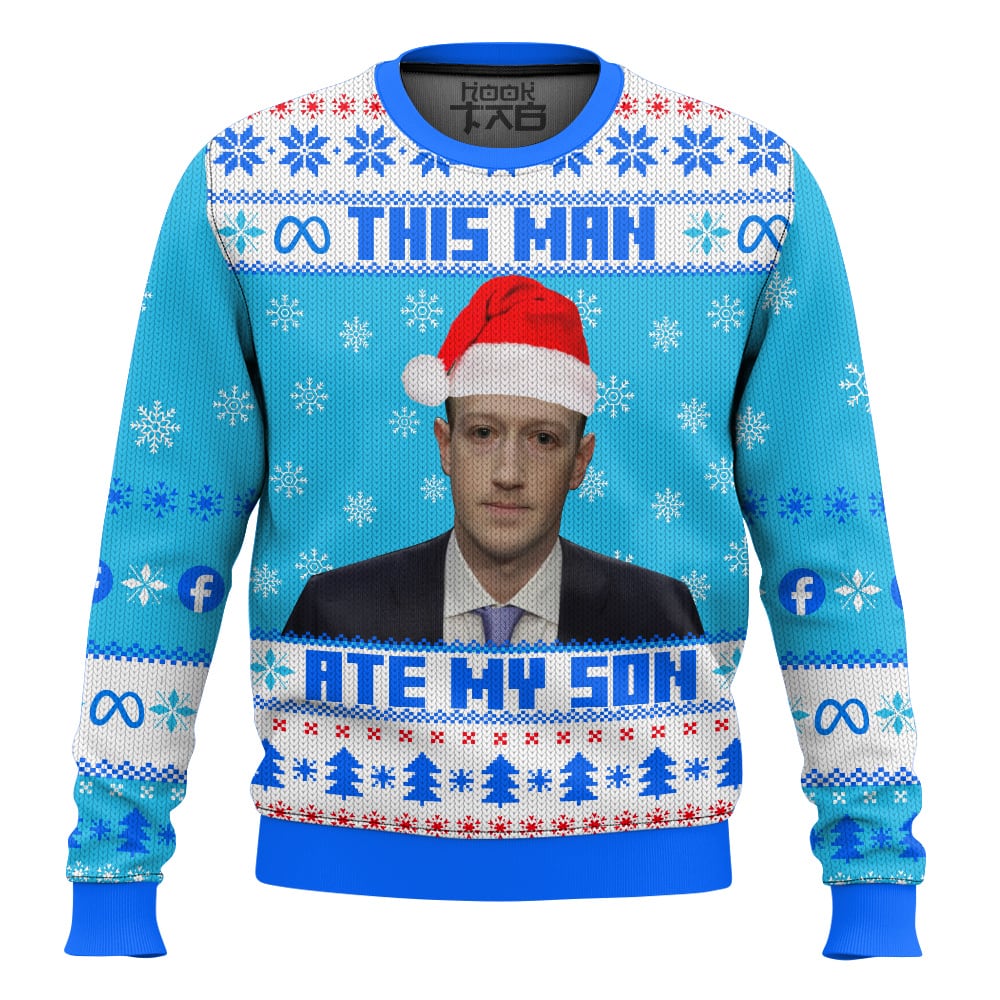Hooktab “This Man Ate My Son” Mark Zuckerberg Meme Ugly Christmas Sweater