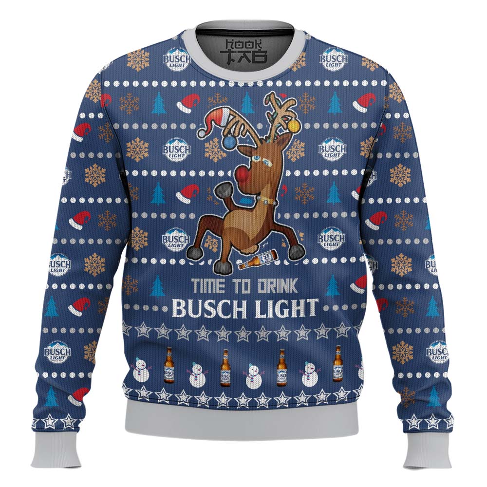 Hooktab Time To Drink Busch Light Ugly Christmas Sweater