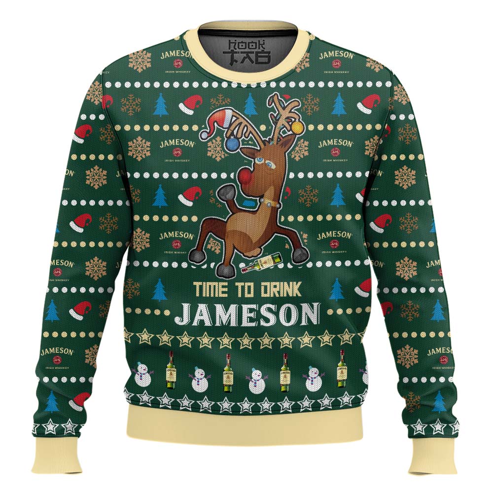 Hooktab Time To Drink Jameson Ugly Christmas Sweater