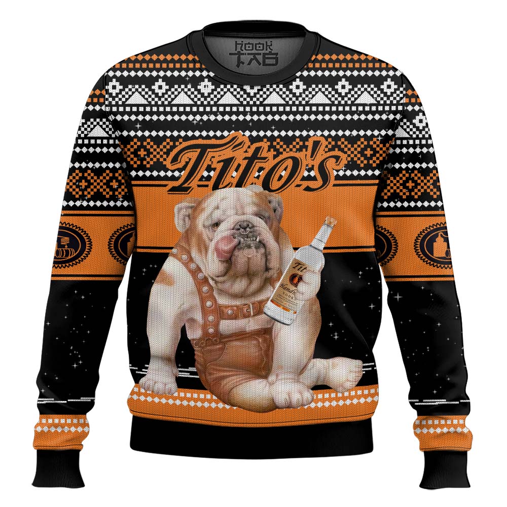 Hooktab Tito’s Bulldog Ugly Christmas Sweater