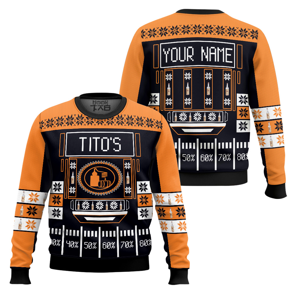 Hooktab Tito’s Vodka – Custom Name Ugly Christmas Sweater