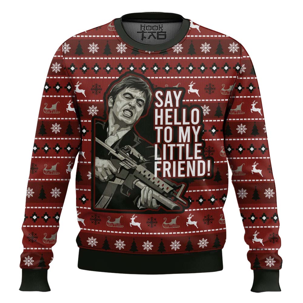 Hooktab Tony Montana Say Hello To My Little Friend Scarface Ugly Christmas Sweater