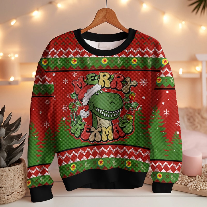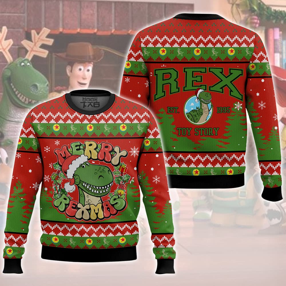 Hooktab Toy Story Merry Rexmas Ugly Christmas Sweater