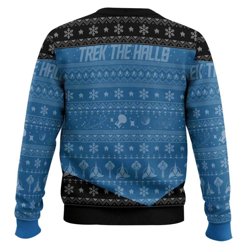 Hooktab Trek The Halls Star Trek 1987 Blue Ugly Christmas Sweater