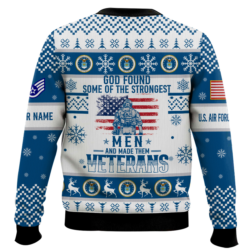 Hooktab US Air Force God Found The Strongest Men And Made Them Veteran – Custom Name And Rank Ugly Sweater