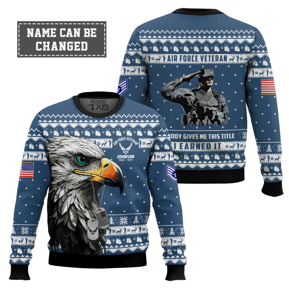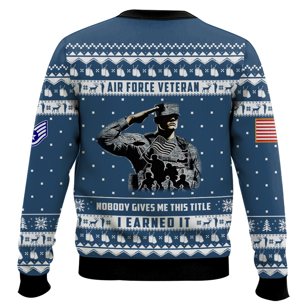 Hooktab US Air Force Nobody Gives Me This Title I Earned It – Custom Name, Rank And Years Of Service Ugly Sweater