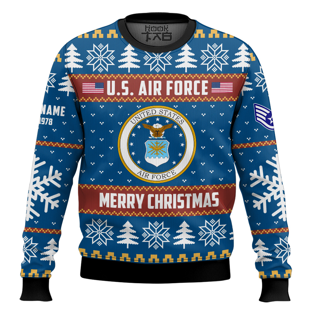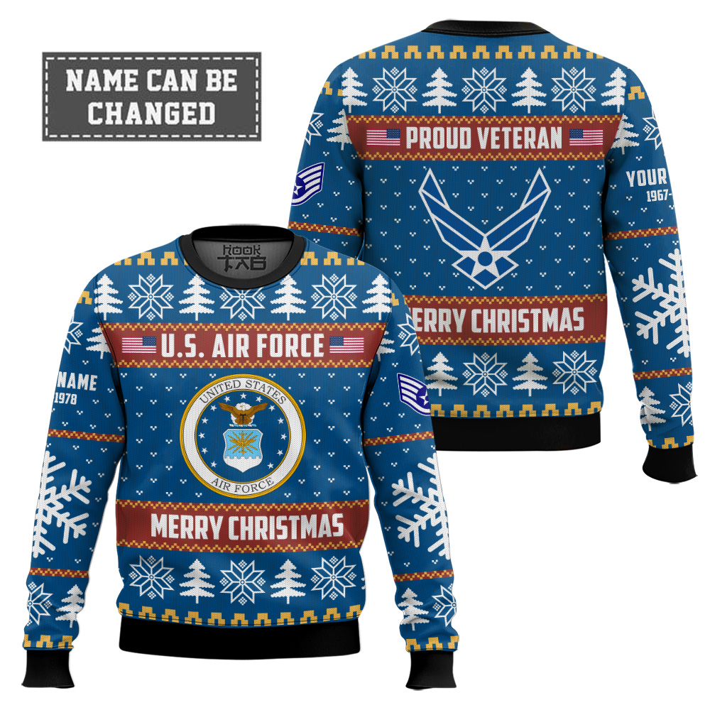 Hooktab US Air Force Proud Veteran – Custom Name, Rank And Years Of Service Ugly Sweater