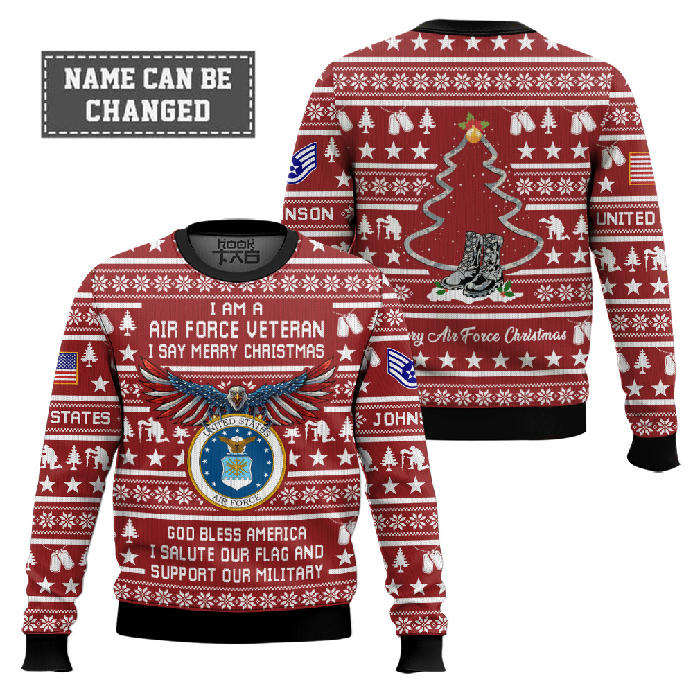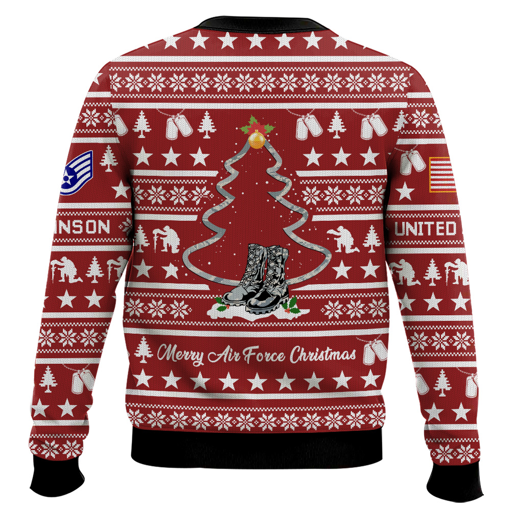 Hooktab US Air Force Veteran Merry Christmas – Custom Name And Rank Ugly Sweater