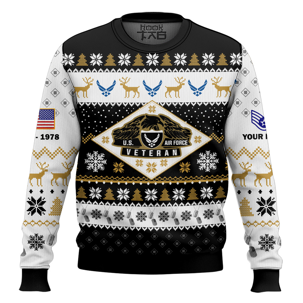 Hooktab US Air Force Veterans – Custom Name, Rank And Years Of Service Ugly Sweater