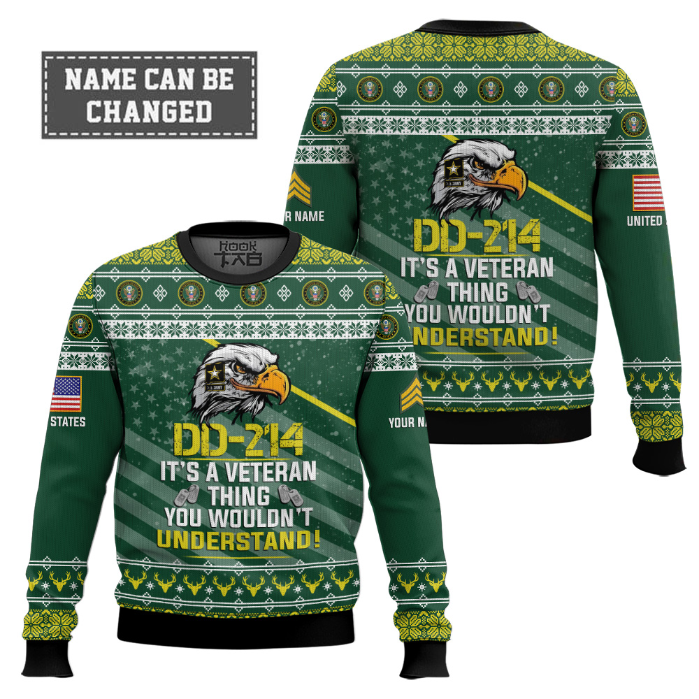 Hooktab US Army DD-214 It’s A Veteran Thing You Wouldn’t Understand – Custom Name And Rank Ugly Sweater