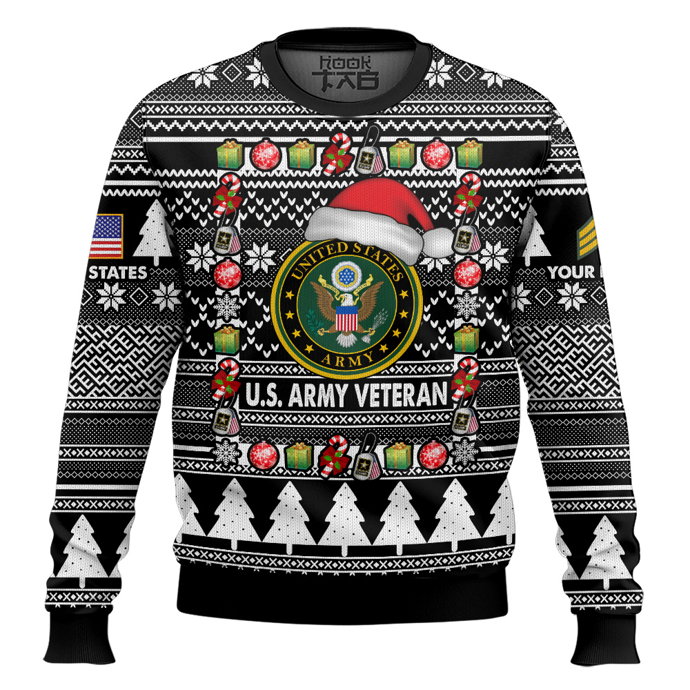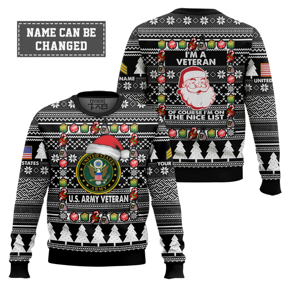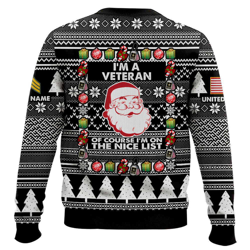 Hooktab US Army I’m A Veteran, Of Course I’m On The Nice List – Custom Name And Rank Ugly Sweater
