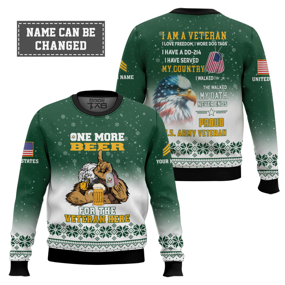 Hooktab US Army One More Beer For The Veteran Here – Custom Name And Rank Ugly Sweater