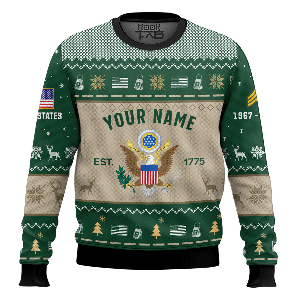 Hooktab US Army Proud Motto – Custom Name, Rank And Years Of Service Ugly Sweater