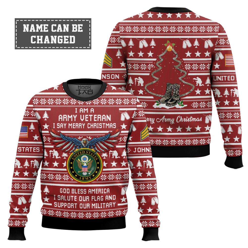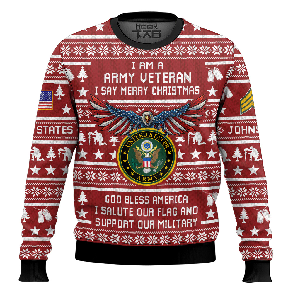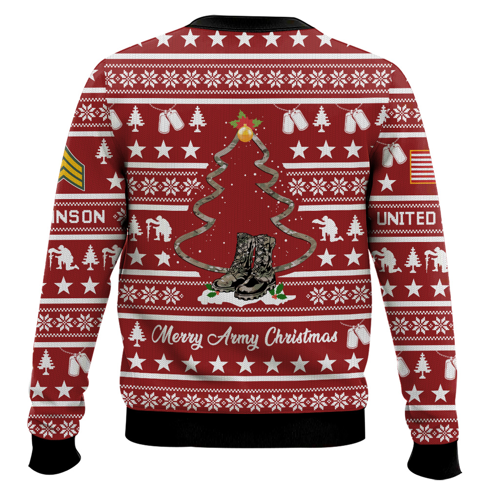 Hooktab US Army Veteran Merry Christmas – Custom Name And Rank Ugly Sweater