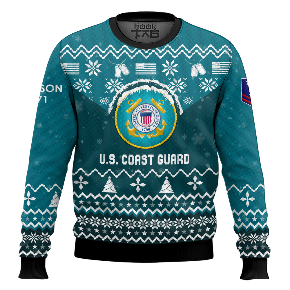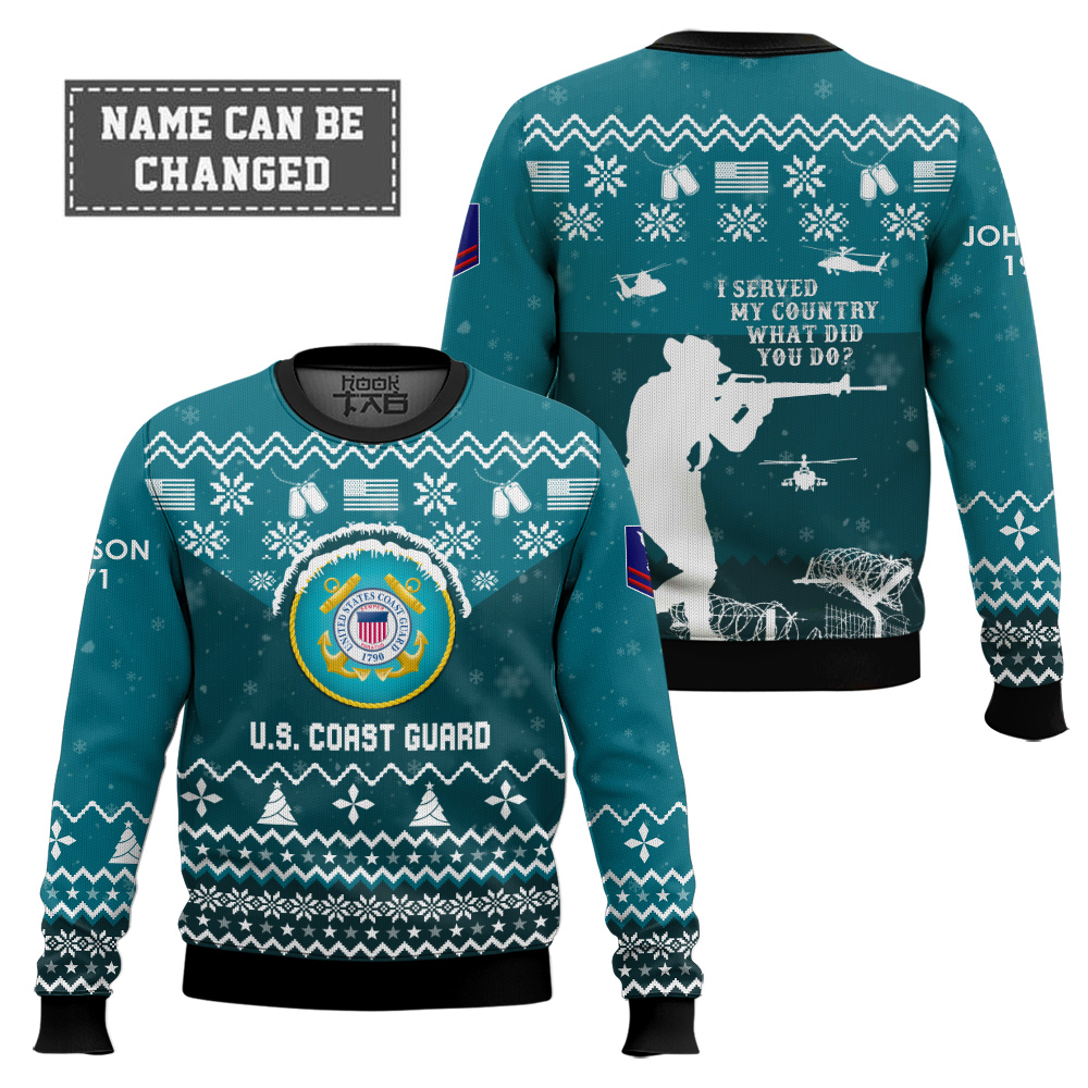 Hooktab US Coast Guard I Served My Country – Custom Name, Rank And Years Of Service Ugly Sweater