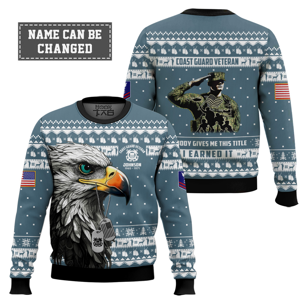 Hooktab US Coast Guard Nobody Gives Me This Title I Earned It – Custom Name, Rank And Years Of Service Ugly Sweater
