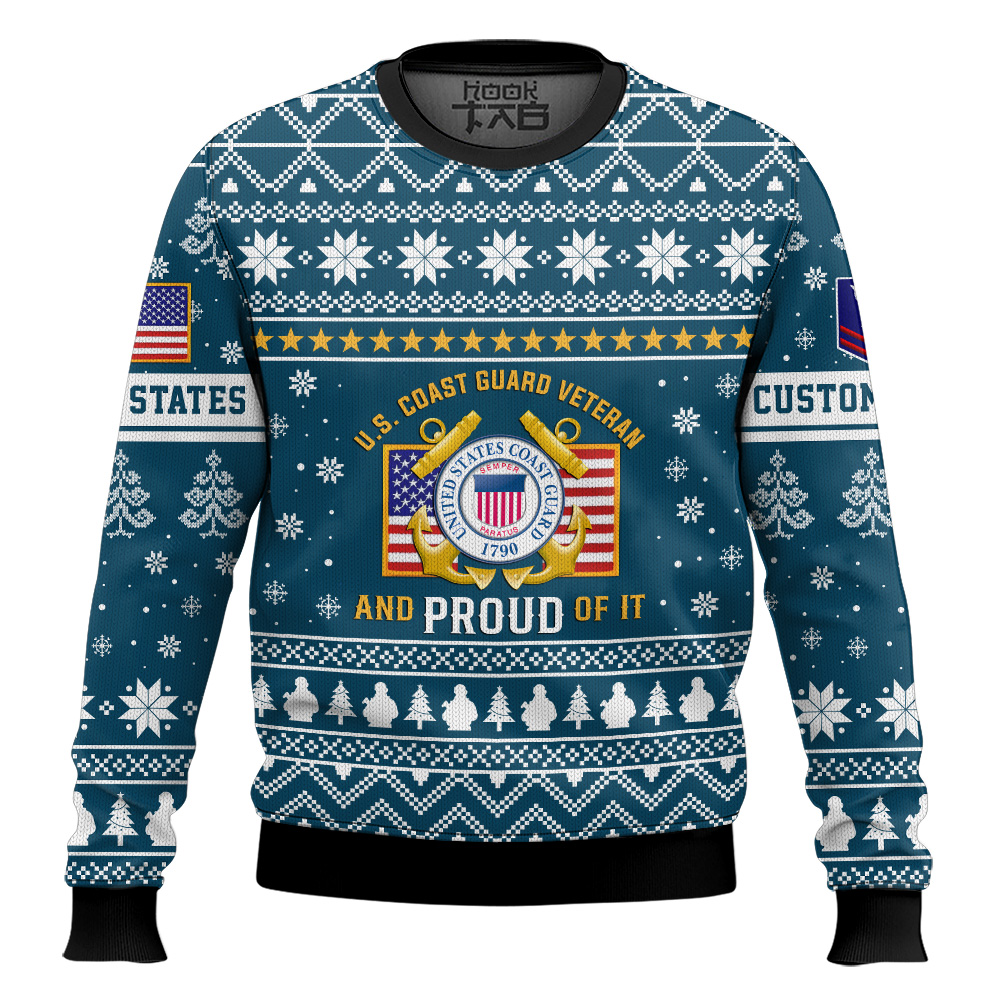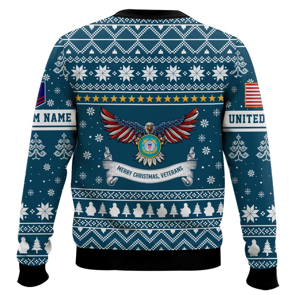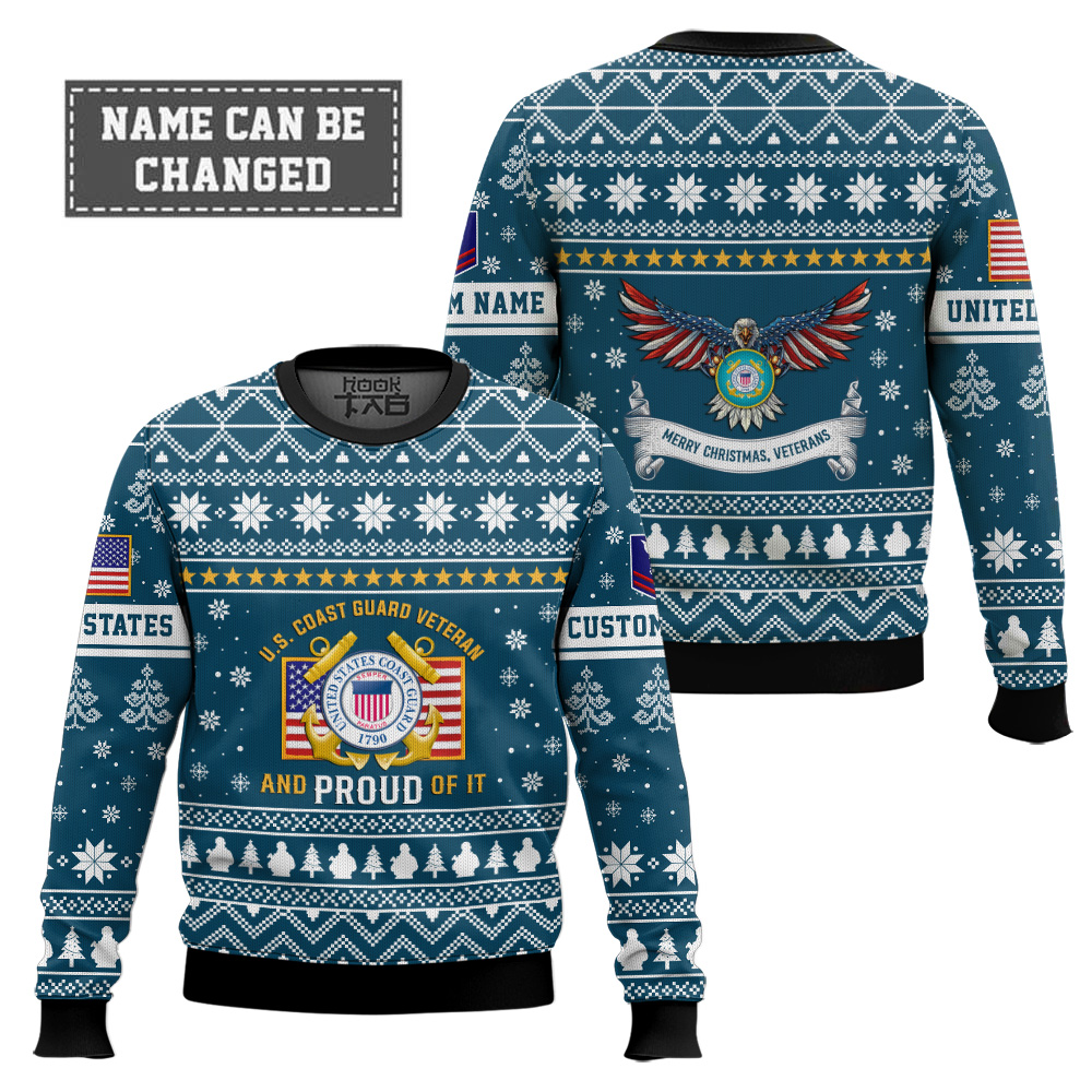 Hooktab US Coast Guard Proud Veteran – Custom Name And Rank Ugly Sweater