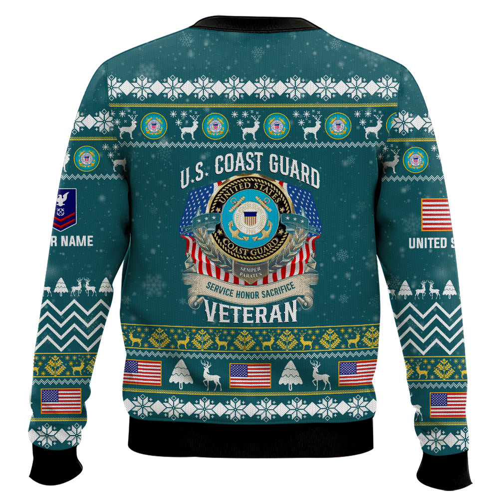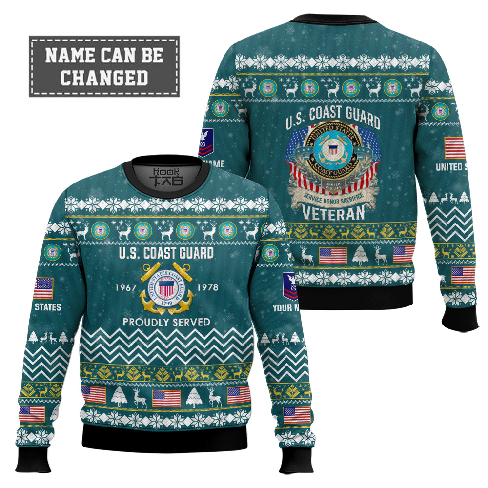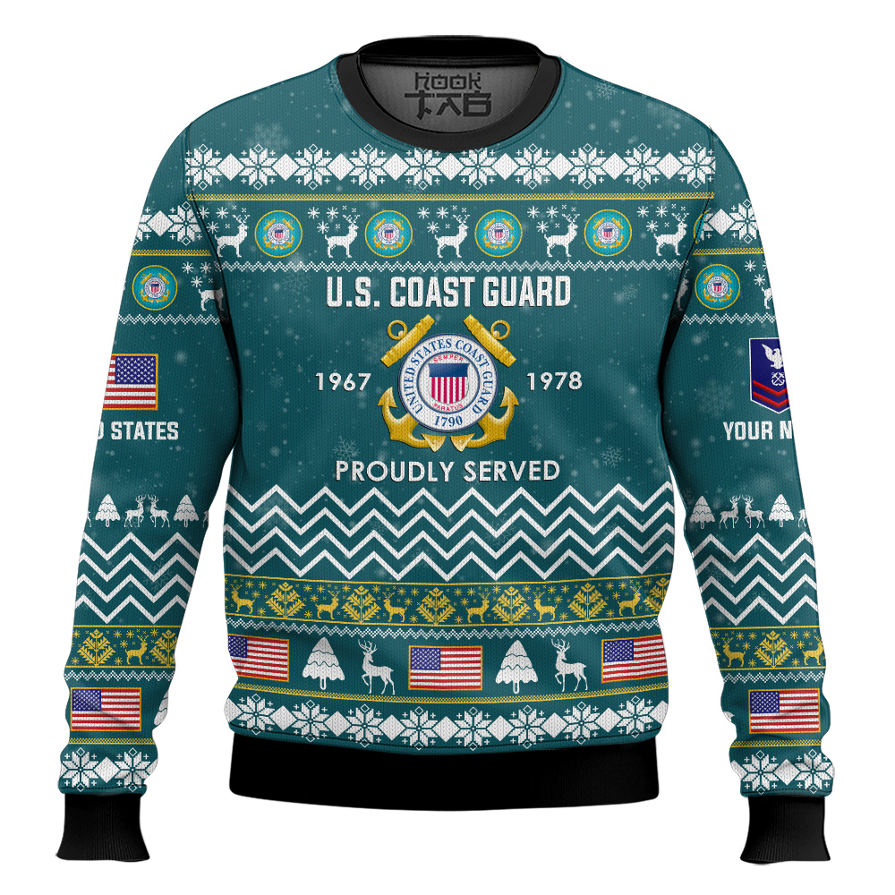 Hooktab US Coast Guard Proudly Served Veteran – Custom Name, Rank And Years Of Service Ugly Sweater