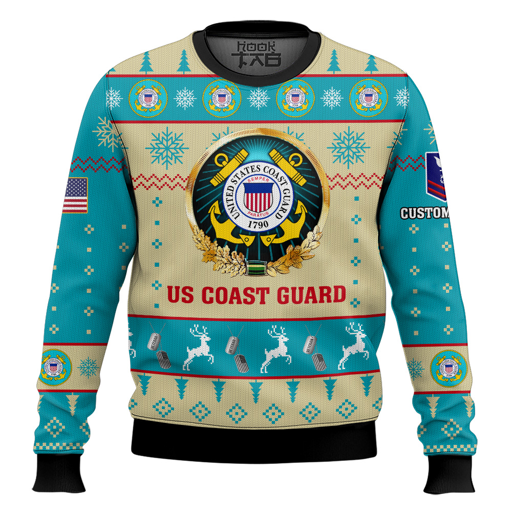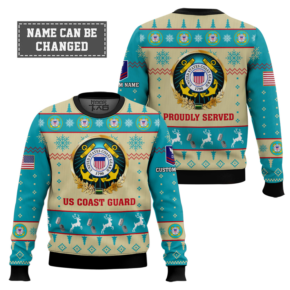 Hooktab US Coast Guard Proudly Served – Custom Name And Rank Ugly Sweater