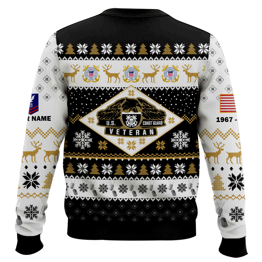 Hooktab US Coast Guard Veterans – Custom Name, Rank And Years Of Service Ugly Sweater