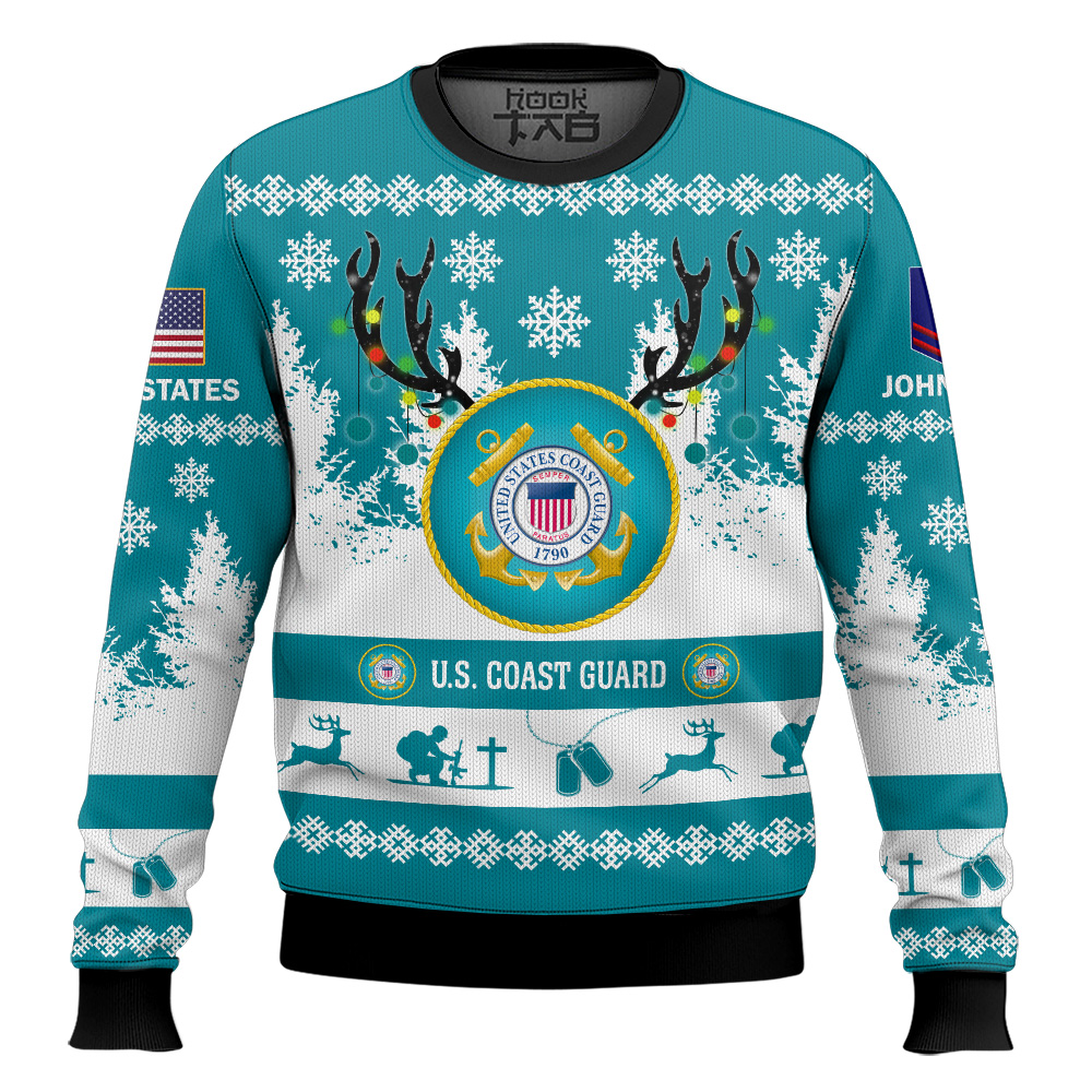 Hooktab US Coast Guard You’ll Never Walk Alone – Custom Name and Rank Ugly Sweater