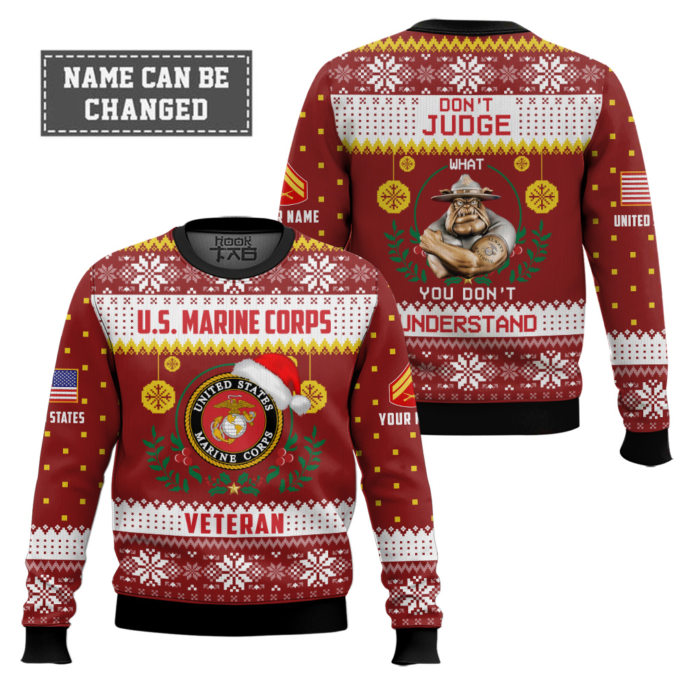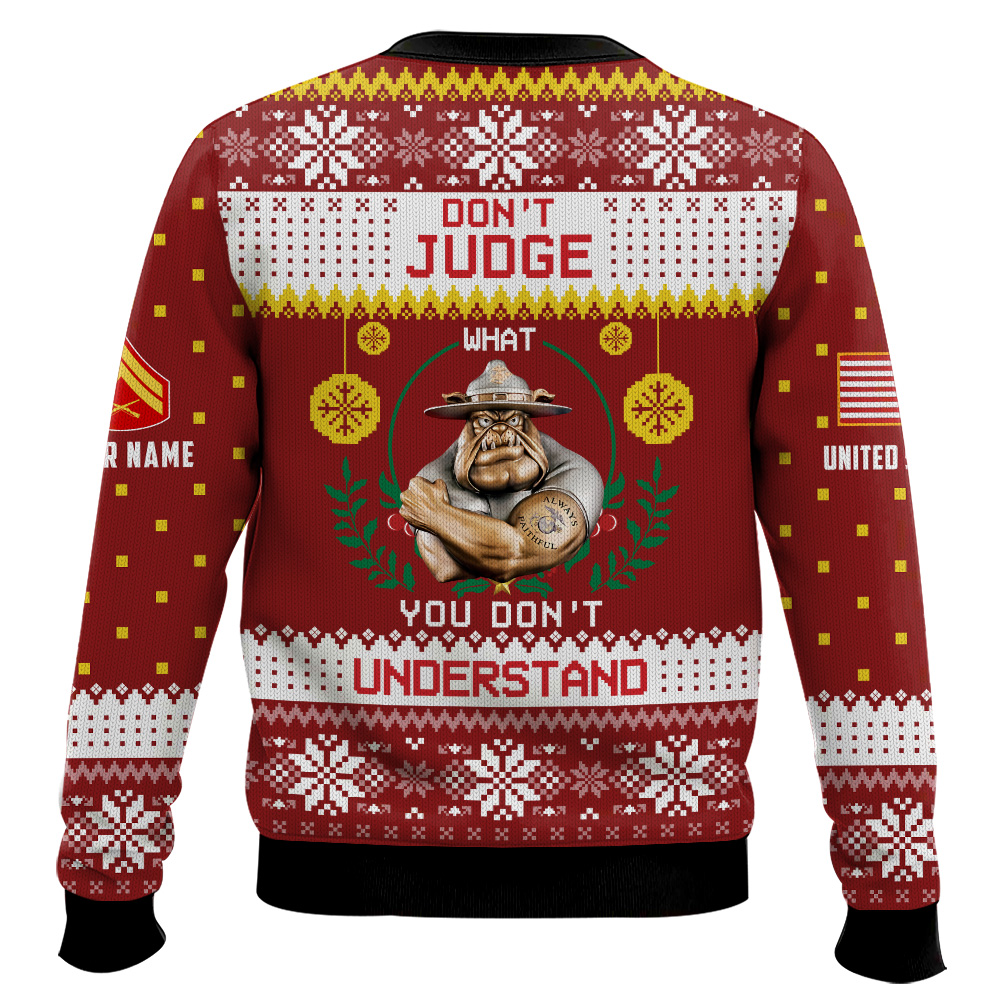 Hooktab US Marine Corps Don’t Judge What You Don’t Understand – Custom Name And Rank Ugly Sweater