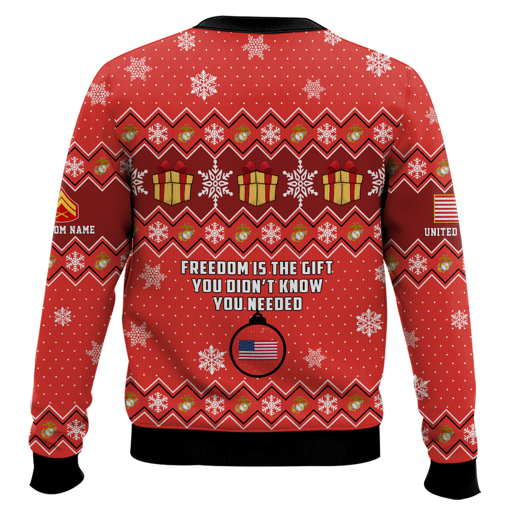 Hooktab US Marine Corps “Freedom Is The Gift You Didn’t Know You Needed†– Custom Name And Rank Ugly Sweater