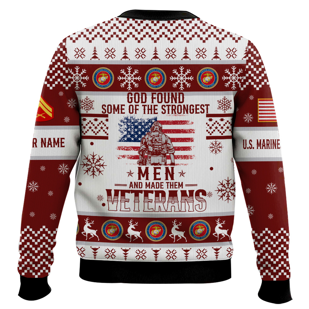 Hooktab US Marine Corps God Found The Strongest Men And Made Them Veteran – Custom Name And Rank Ugly Sweater