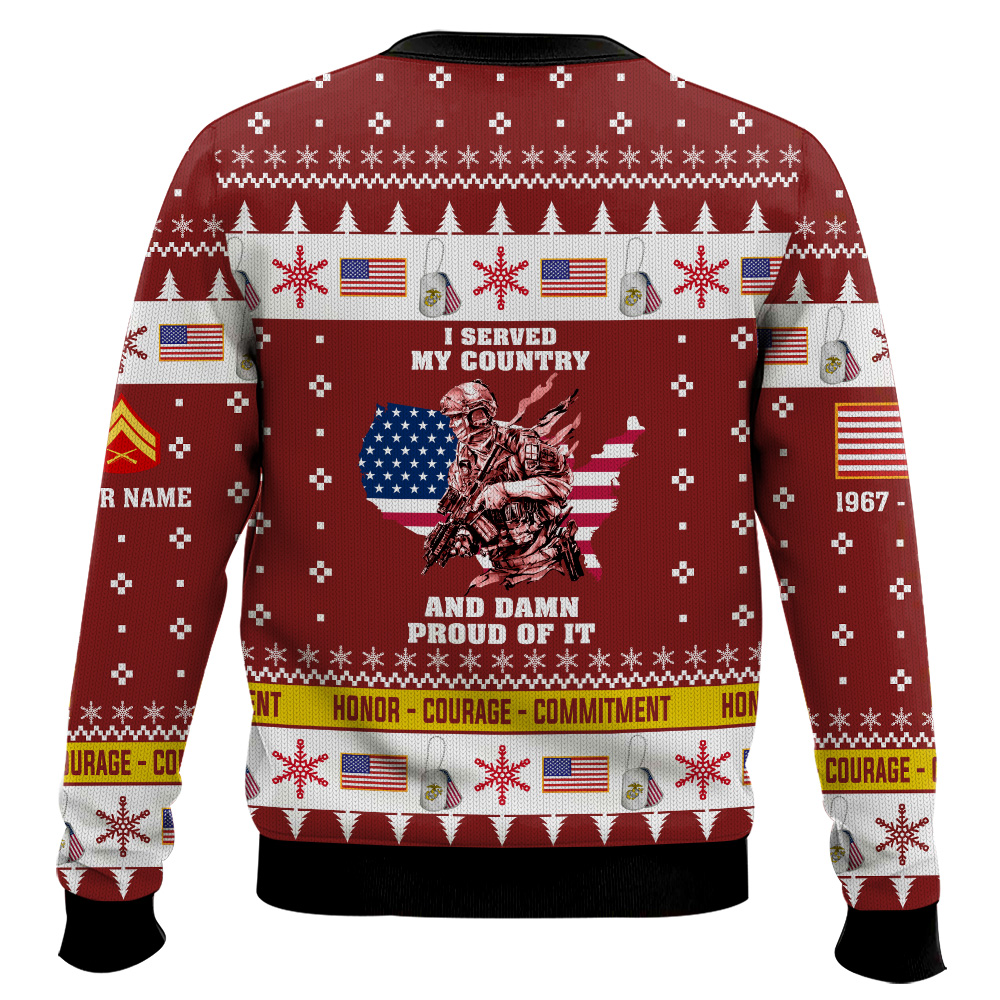 Hooktab US Marine Corps I Served My Country And Damn Proud Of It – Custom Name, Rank And Years Of Service Ugly Sweater