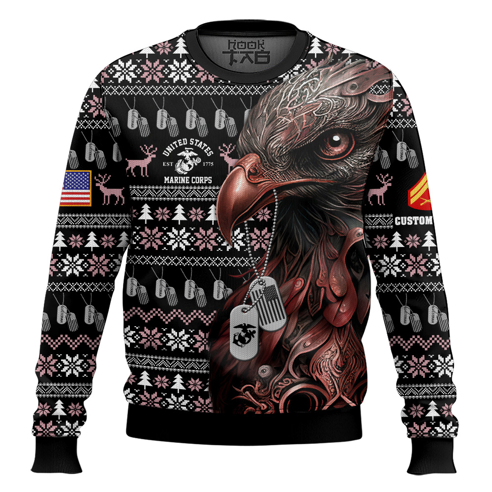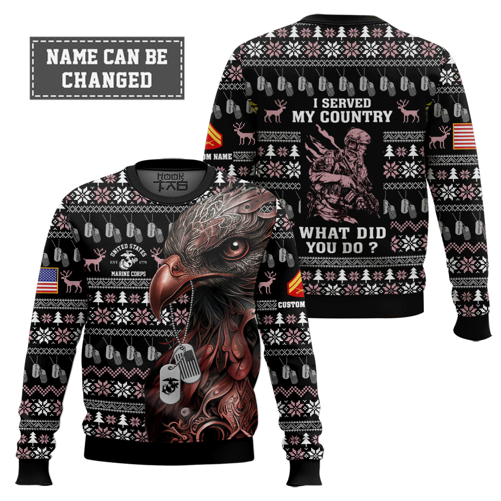 Hooktab US Marine Corps Liberty Eagle I Served My Country – Custom Name And Rank Ugly Sweater