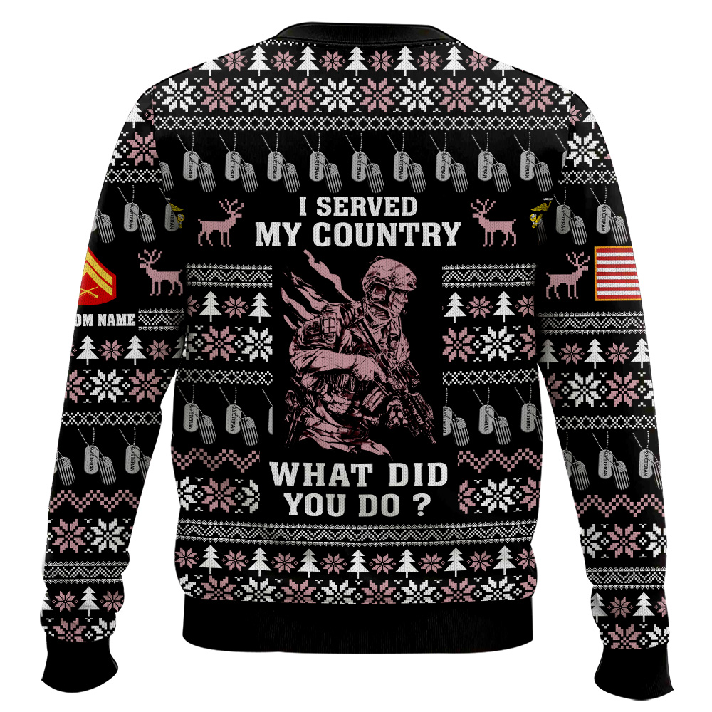 Hooktab US Marine Corps Liberty Eagle “I Served My Country” – Custom Name And Rank Ugly Sweater