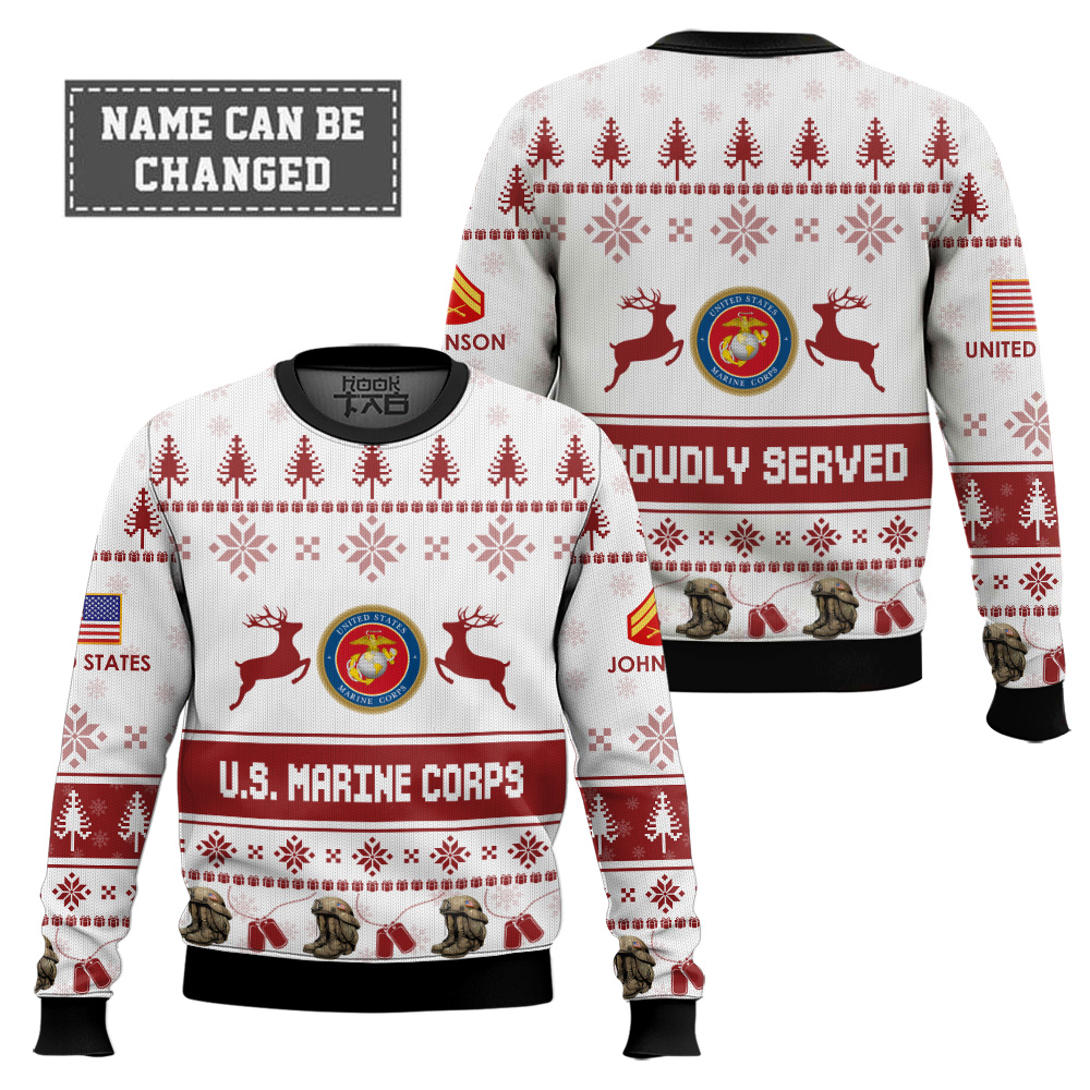 Hooktab US Marine Corps Veteran Proudly Served – Custom Name And Rank Ugly Sweater