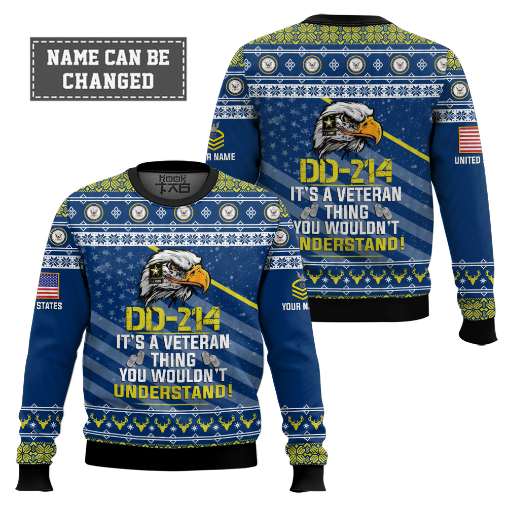 Hooktab US Navy DD-214 It’s A Veteran Thing You Wouldn’t Understand – Custom Name And Rank Ugly Sweater