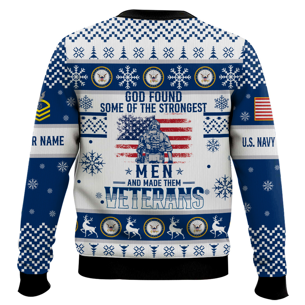 Hooktab US Navy God Found The Strongest Men And Made Them Veteran – Custom Name And Rank Ugly Sweater